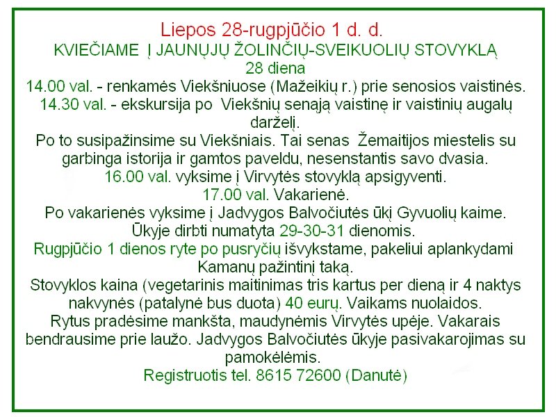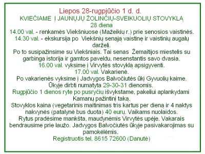 • Stovyklos